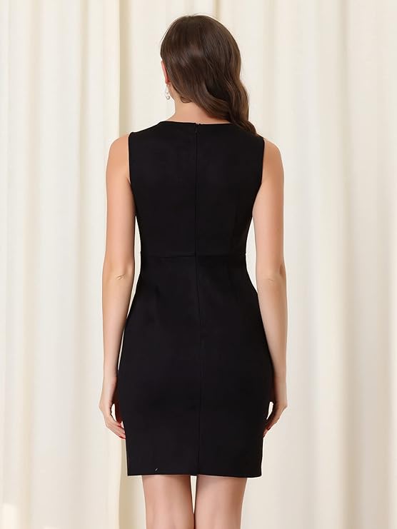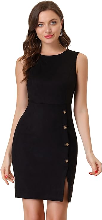 Women's Sheath Dress Sleeveless Button Decor Side Slit Suede Work Pencil Dress